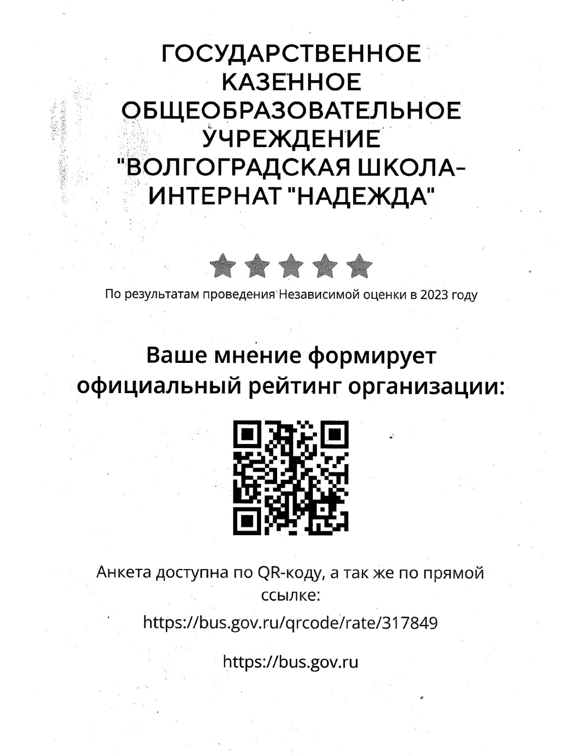 Чтобы оценить условия осуществления образовательной деятельности наведите камеру Вашего телефона и отсканируйте QR-код или пройдите по прямой ссылке: https://bus.gov.ru/qrcode/rate/317849