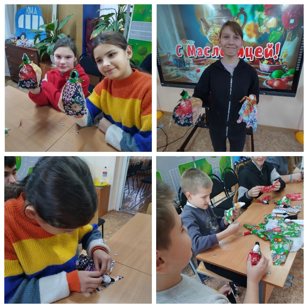 Руководитель школьного музея Гончарова Татьяна Николаевна провела для обучающихся 4а, 8б классов мастер-класс по изготовлению обрядовой куклы "Сорока-ворона". На занятии была рассмотрена тема "Традиции празднования Масленицы": песни, обряды, приметы, фольклор, их значение. У каждого участника мастер-класса получилась своя "Сорока-ворона" с особым характером и настроением.