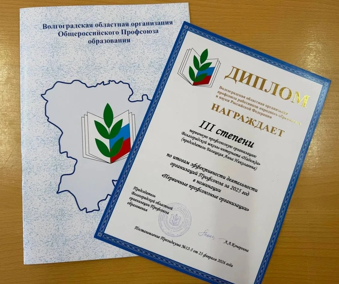 27 февраля 2026 г. состоялось V заседание Комитета Волгоградской областной организации Общероссийского Профсоюза образования, ключевым вопросом которого стало рассмотрение итогов деятельности за прошедший год и определение задач на текущий период. В ходе заседания Комитет утвердил отчёт о работе областной организации за 2025 год. В своём выступлении председатель областной организации Лариса Львовна Кочергина подчеркнула, что деятельность Профсоюза в отчётном периоде была направлена на защиту трудовых и социально-экономических прав работников образования, развитие социального партнёрства, укрепление правозащитной и информационной работы, охраны труда, поддержку молодых педагогов и профсоюзного актива. Обозначены приоритеты и основные направления работы на 2026 год. В рамках повестки дня Комитет рассмотрел исполнение и корректировку сметы доходов и расходов за 2025 год, а также определил размер отчислений членских профсоюзных взносов в областную организацию на 2026 год. Президиум принял к сведению результаты работы организаций и одобрил эффективную и качественную деятельность по выполнению задач вышестоящих профсоюзных структур Поздравляем всех членов профсоюза ППО Волгоградской школы-интерната «Надежда» за III место — по итогам эффективной деятельности за 2025г. в номинации «Первичные профсоюзные организации»!!!