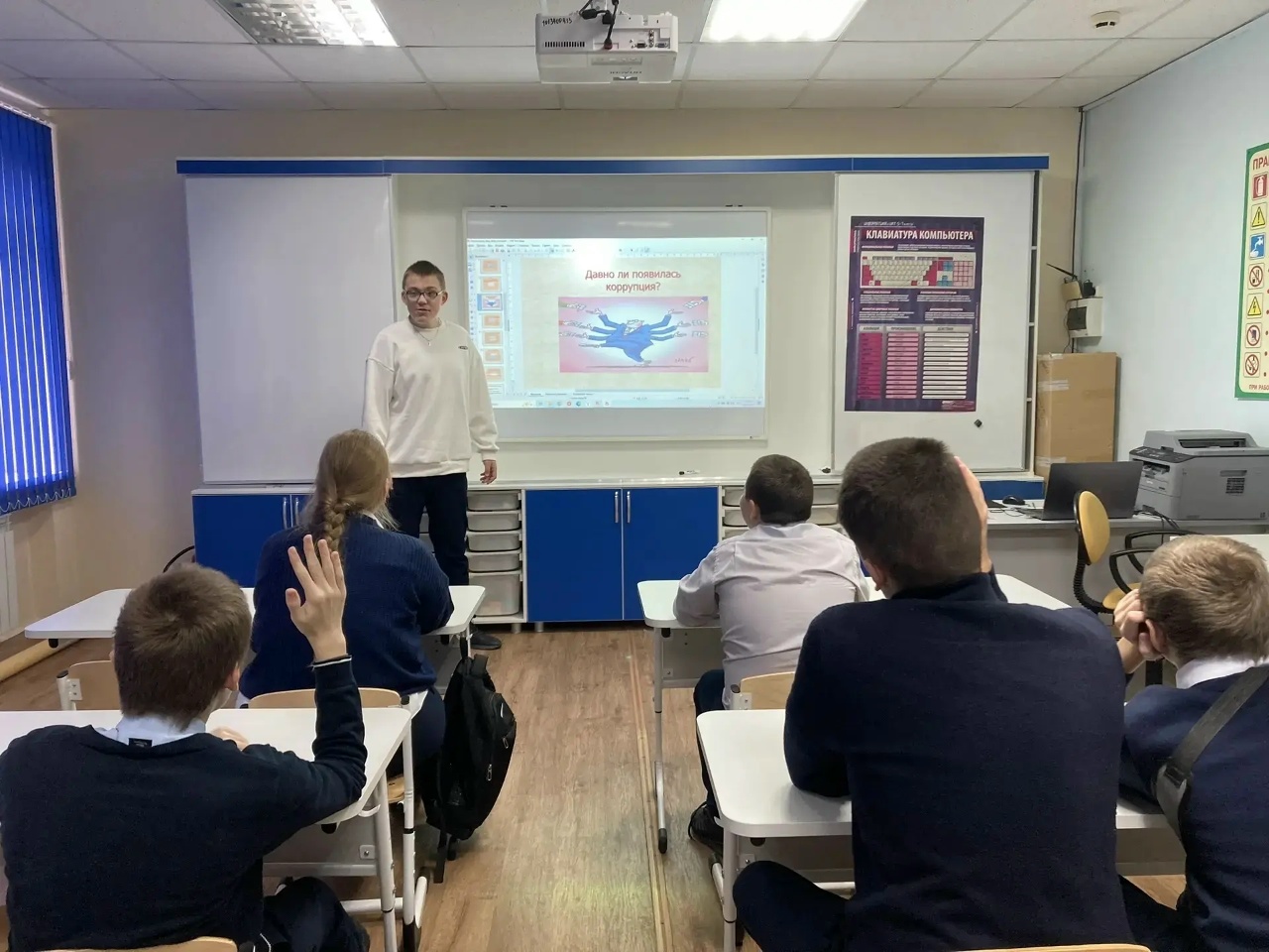 Обучающиеся 7а,8а классов приняли участие в беседе-презентации "Коррупция и ее последствия". На занятии ребята разобрали примеры коррупционных преступлений, узнали об ответственности за подобные деяния, определили какие последствия несет коррупция для экономики государства. По итогам занятия пришли к выводу, что коррупция является преступлением, которое подрывает экономику, ослабляет институты власти, разрушает доверие общества и ведет к неравномерному распределению ресурсов, ухудшая жизнь большинства граждан.