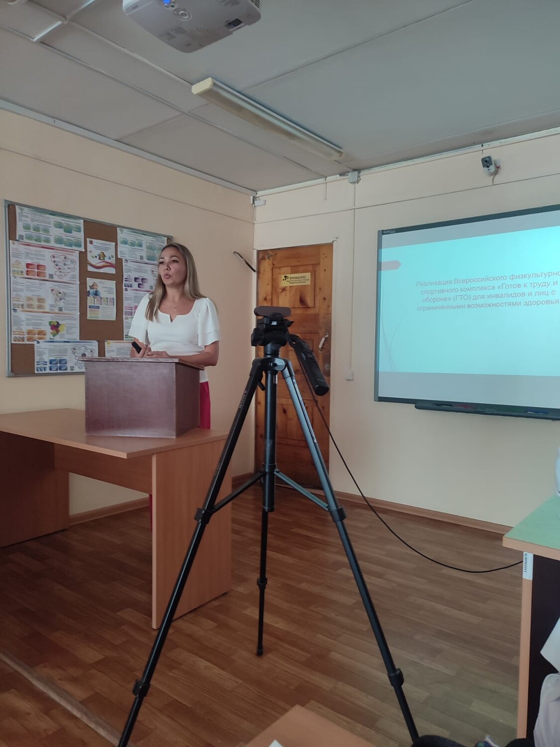 25 августа 2025 г. на базе ГАУ ДПО "ВГАПО" в рамках традиционного областного августовского совещания прошла научно-методическая сессия на тему: «Особенности реализации программы по учебному предмету «Физическая культура» (в урочной и во внеурочной форме) в 2025-2026 учебном году».С докладом учитель физической культуры "Волгоградской школы - интерната "Надежда "- Кислюк Наиля Равилевна. Тема выступления: "Реализация Всероссийского физкультурно – спортивного комплекса ГТО для инвалидов и лиц с ОВЗ".